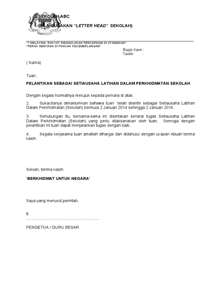 Contoh Surat Lantik Pengerusi Lps
